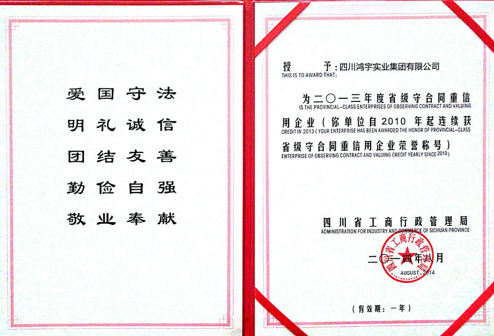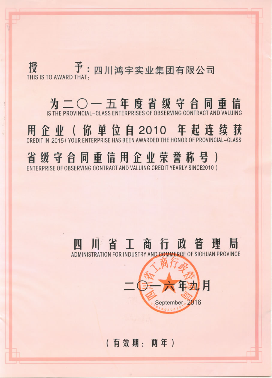 四川鸿宇实业集团有限公司始建于2002年4月,位于“中国科技城”——四川绵阳,注册资本1.2亿元。职工总数400余人,其中各类专业技术人员、中高级职称300余人。 鸿宇秉承“诚信、拓展、合作、奉献”企业精神,坚持“一业为主、多元发展、创新务实、内联外拓”的经营理念,建立了科学的管理体制和运行机制,并形成了具有鸿宇特色的管理模式和企业文化。